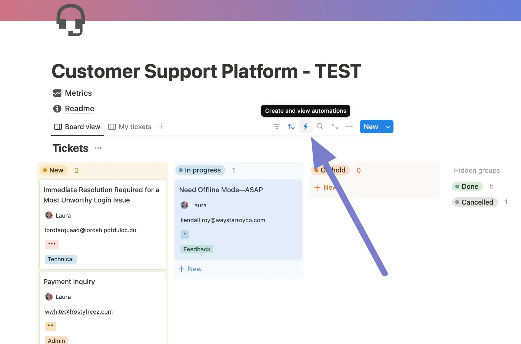 From your tasks database, go to the Automation Menu and click on Create a new automation.